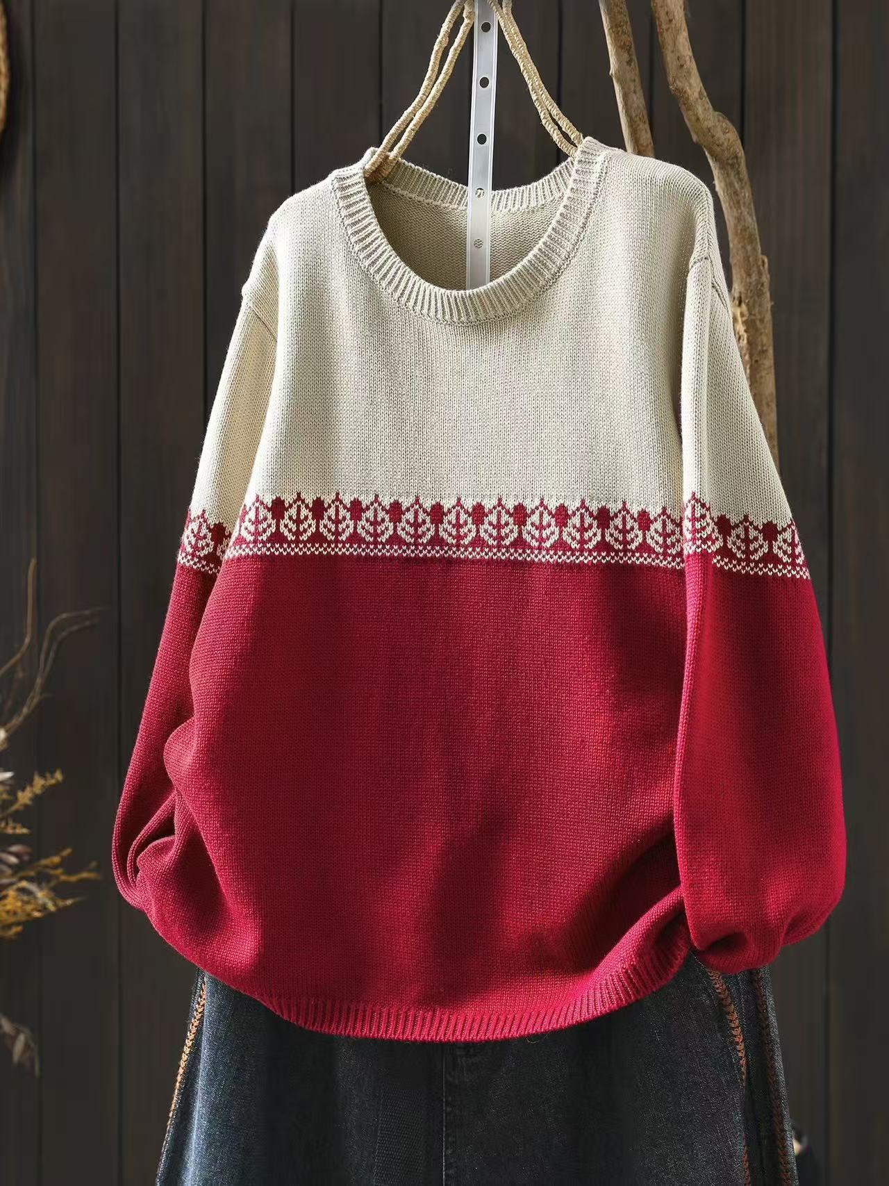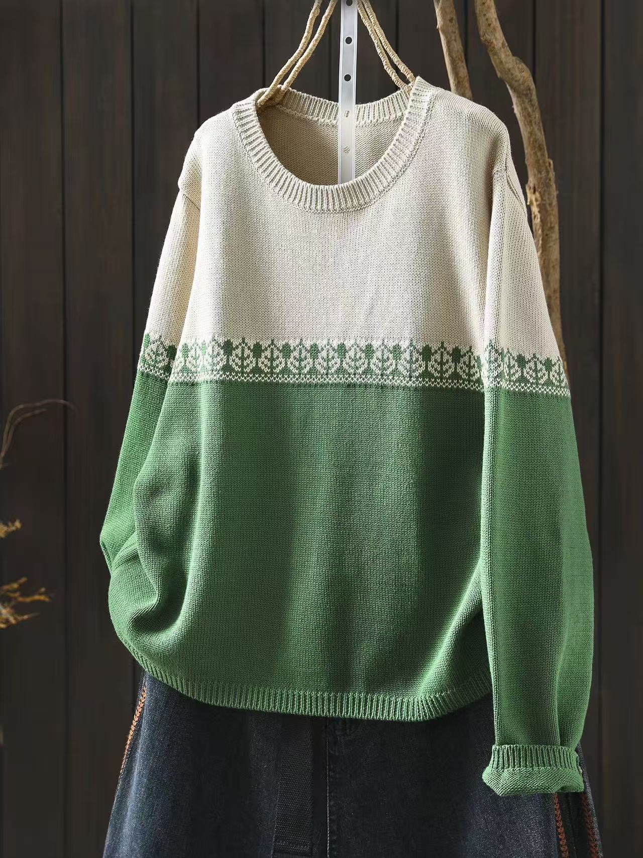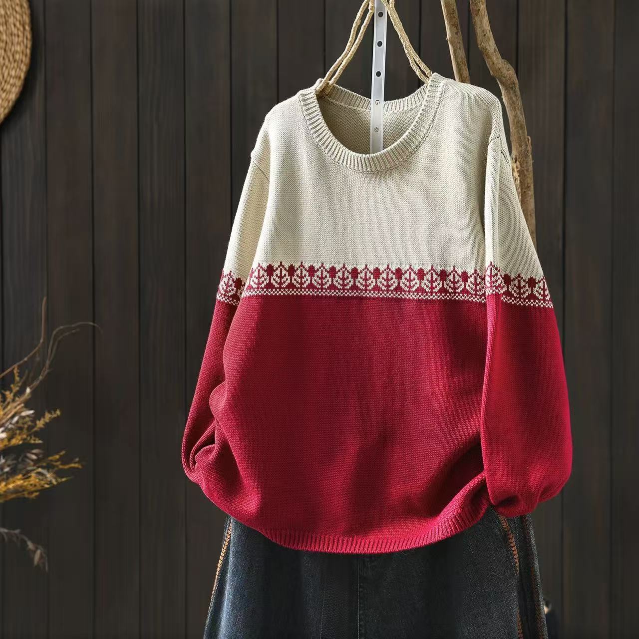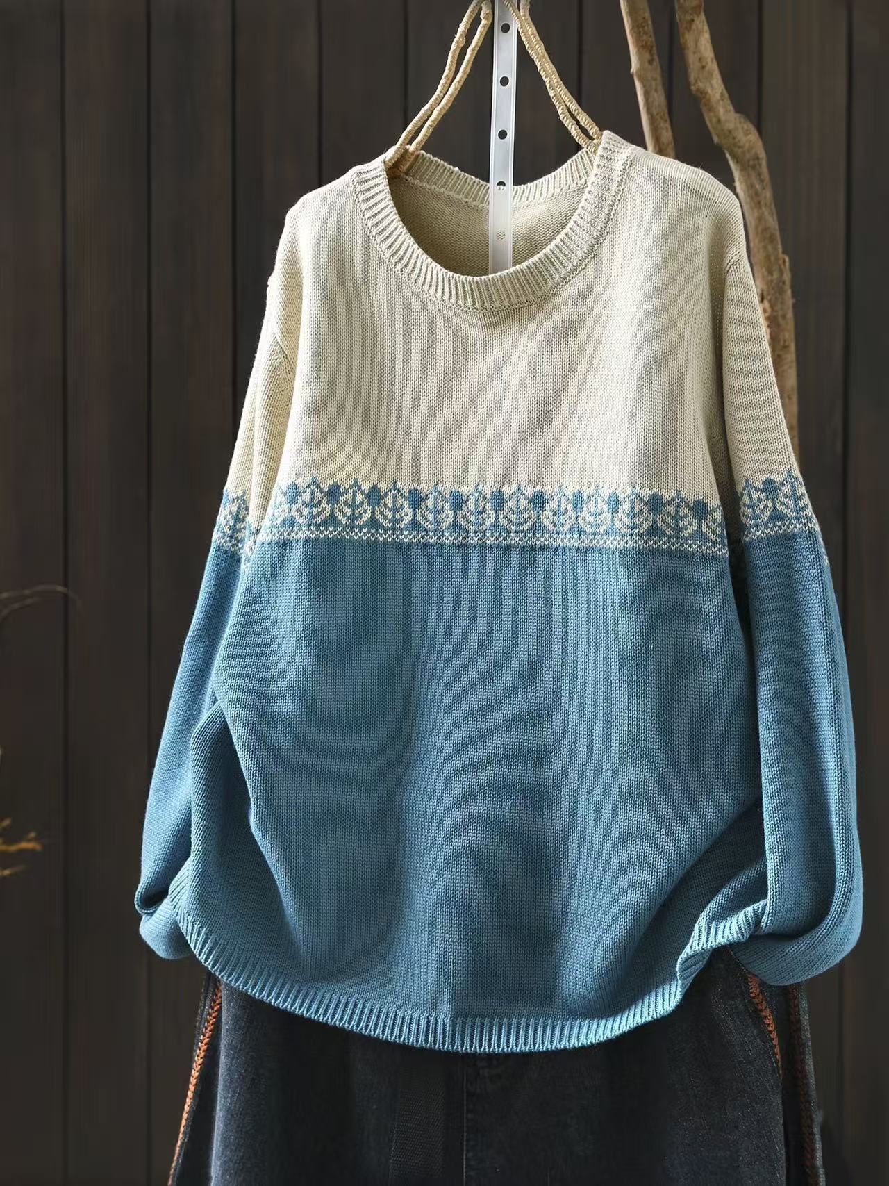 Crew-neck Preppy-style Cotton Knit Sweater Loose And Casual